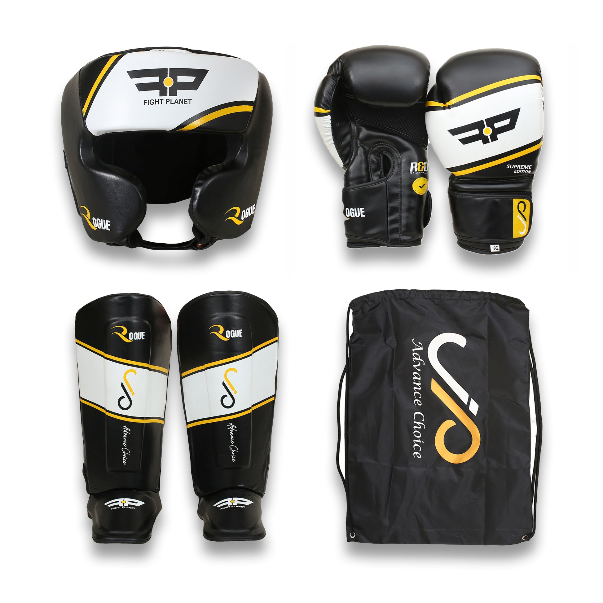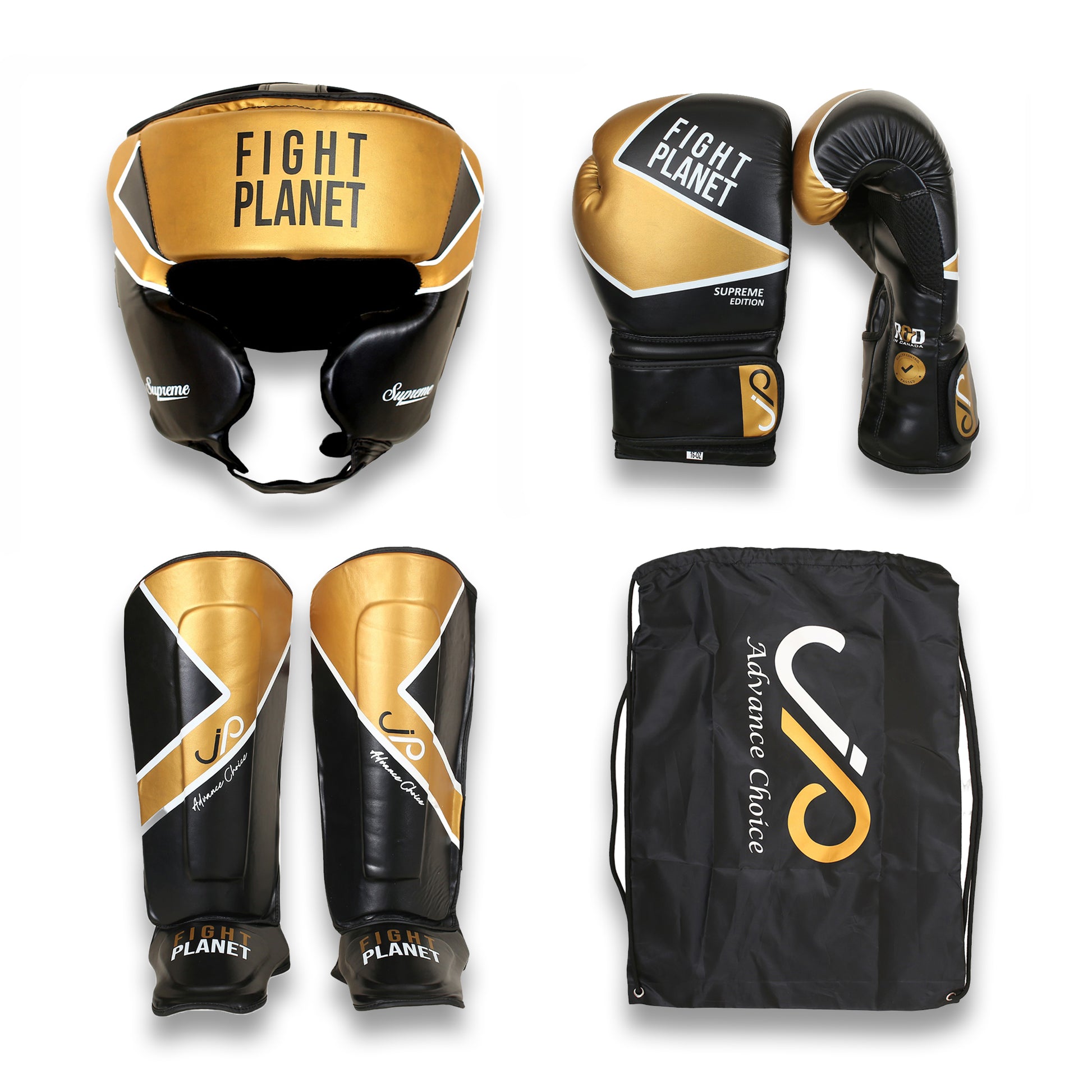 Fight Planet 3PCS MMA Adult Head Guard, Shin & Bag Gloves