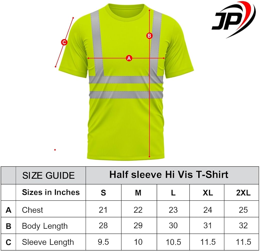 JP ADVANCE CHOICE Pack of 2 High Visibility Dri Fit Short Sleeves T Shirts Safety Breathable Workwear