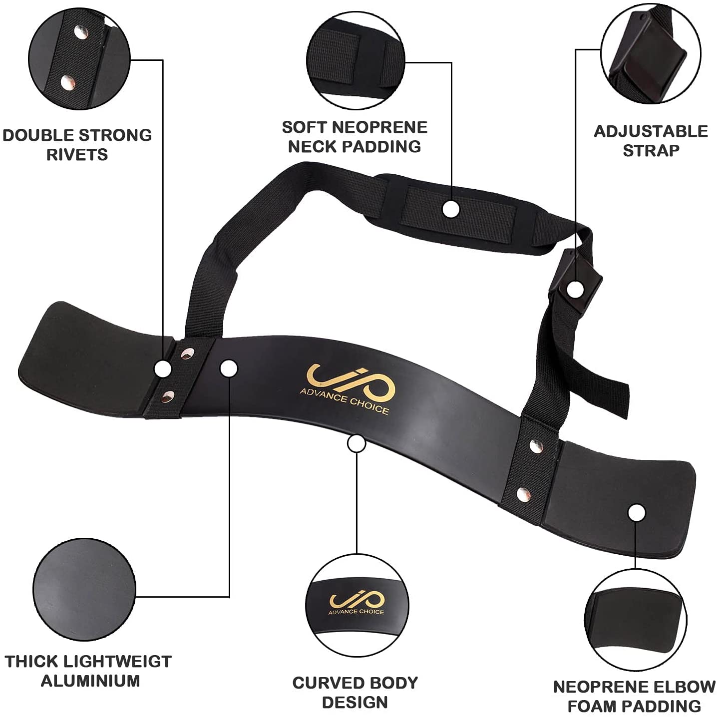 - The aluminum uniquely contoured and layered with high quality comfortable foam padding. It’s specially built to isolate your arms and shoulders and lock your back and elbows in perfect curling position.