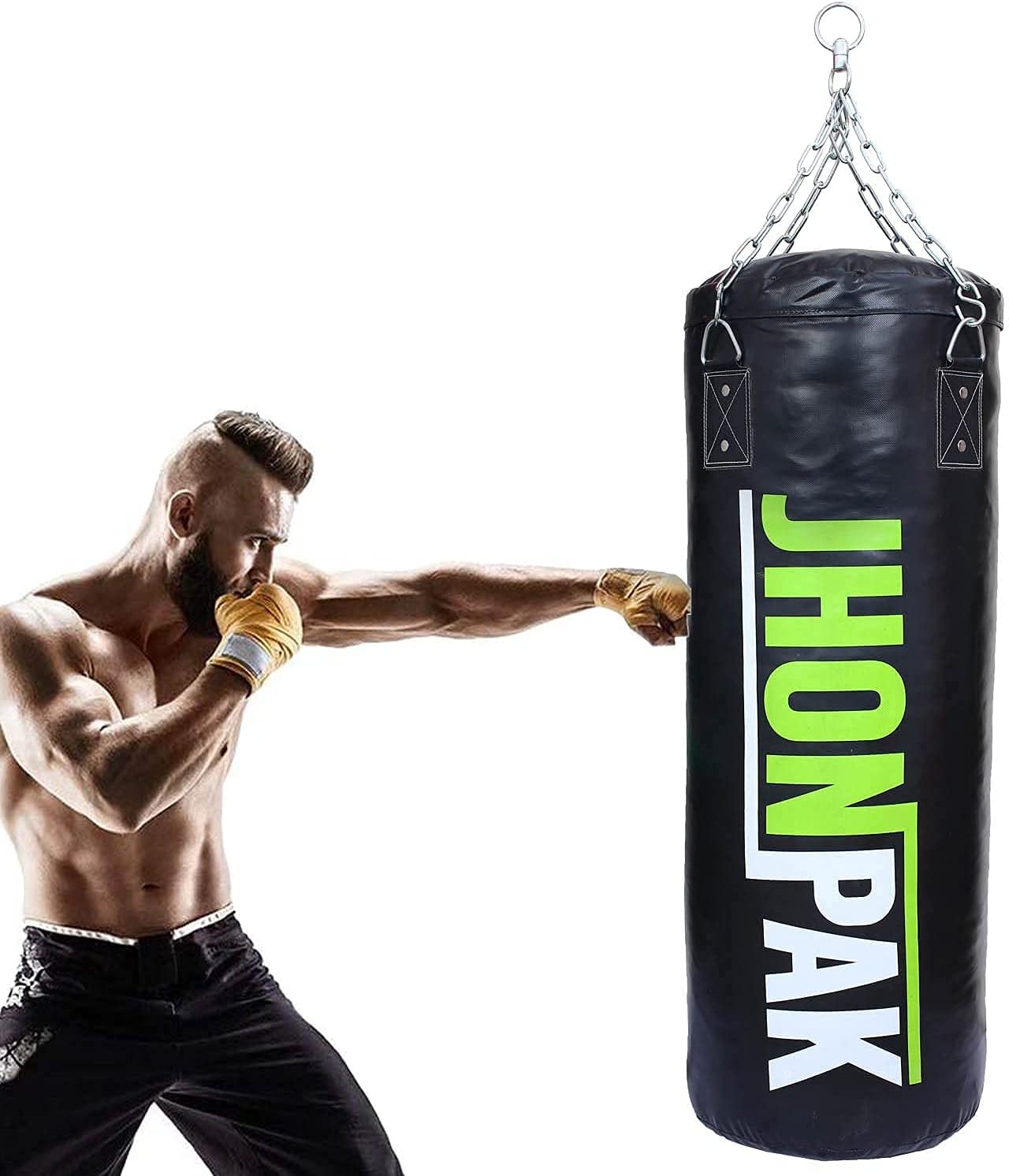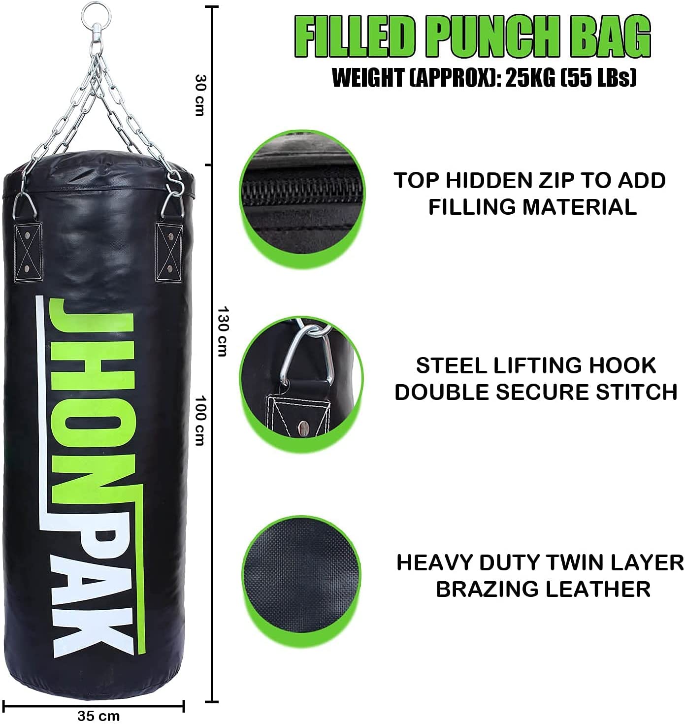 - ✅ PACKAGE & SIZE: JP FILLED punch bag comes with hanging chain. Bag weight approximates 25KG (55 LBs), 100cm long without chain, 35cm in diameter.
